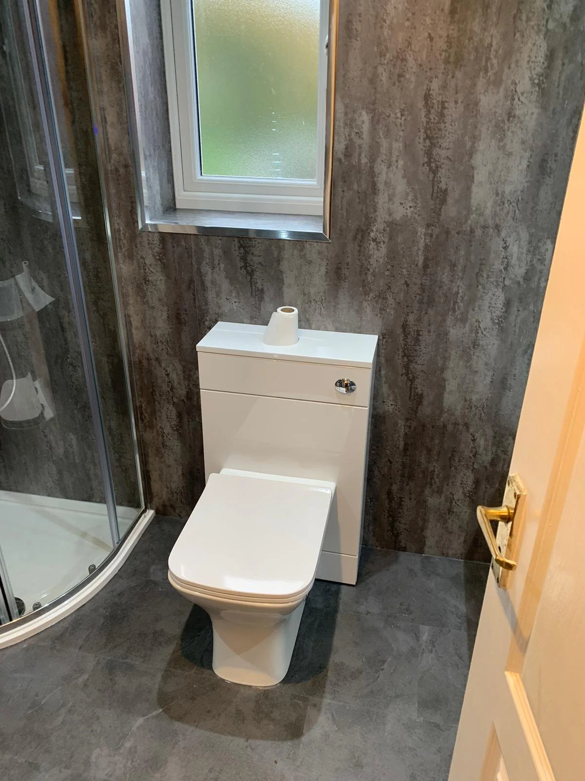 The existing floor was rotten and required full replacement/reboarding. Installed new click flooring throughout. Ceiling fully clad with PVC panelling for a clean, low-maintenance finish.